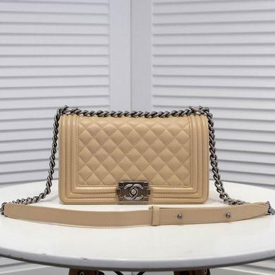 Chanel Boy Handbag Beige with Silver Hardware 25*15*9 CM (Next to Original)
