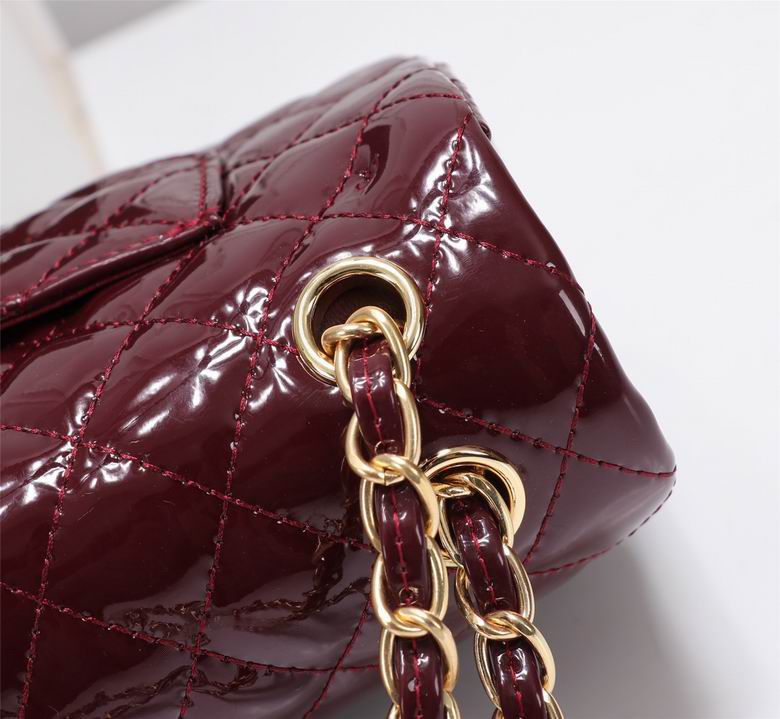 Chanel Glitter Patent Quilted Evening Star Medium Double Flap Red Wine with Golden Hardware 25*14*7 CM (Next to Original)