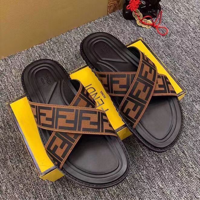 Fendi FF Cross Band Slide Black Brown